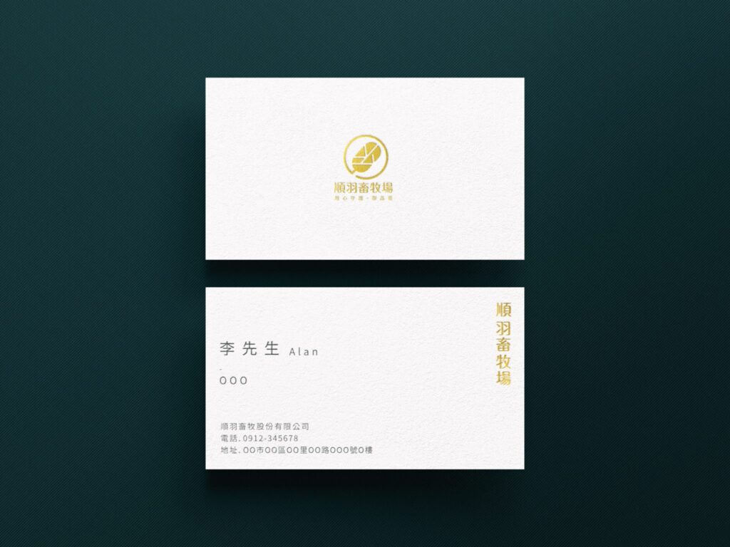 斐品設計與行銷團隊協助科技化經營的順羽畜牧場新品牌,發展與製作完整品牌Logo設計,包括品牌標誌LOGO、中英文標準字設計、色彩計畫、標誌組合與應用規範,同時也往下延伸名片製作與相關周邊。